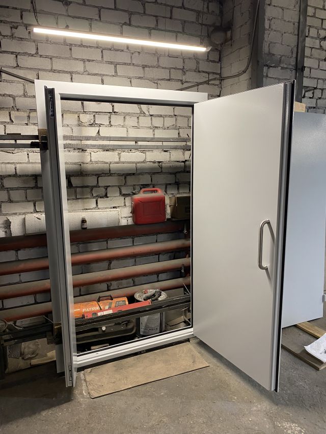 Дверь изготовлена на современном оборудовании с соблюдением всех необходимых требований и стандартов, предъявляемых к техническим дверям. Дверная коробка закрытого или открытого типа выполнена из цельногнутого стального профиля. Дверное полотно усилено вертикальными и L- образными ребрами жесткости. Количество контуров в зависимости от потребности, самые ходовые это с 2 контурами уплотнения. Внутреннее наполнение: негорючая минеральная плита или минеральная вата. Ручка на выбор: противопожарная, ручка-скоба, нажимная ручка. Цилиндровый механизм ключ-ключ или ключ вертушок.