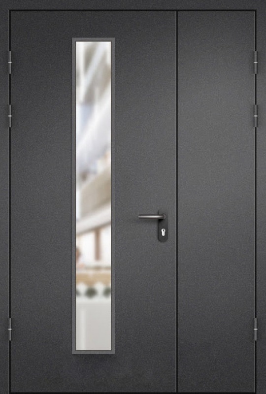 Дверь изготовлена на современном оборудовании с соблюдением всех необходимых требований и стандартов, предъявляемых к техническим дверям. Дверная коробка закрытого или открытого типа выполнена из цельногнутого стального профиля. Дверное полотно усилено вертикальными и L- образными ребрами жесткости. Количество контуров в зависимости от потребности, самые ходовые это с 2 контурами уплотнения. Встроенный стеклопакет толщиной 24 мм. Внутреннее наполнение: негорючая минеральная плита или минеральная вата. Ручка на выбор: противопожарная, ручка-скоба, нажимная ручка. Цилиндровый механизм ключ-ключ или ключ вертушок.