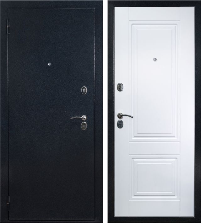 Дверь металлическая входная. Прокатный короб из холоднокатанной стали 1,5 мм. Толщина металла полотна 1,5 мм. Все конструктивные элементы двери изготовлены на лазерной установке с источником IPG. Толщина полотна 91 мм. Наполнение полотна: минеральная вата Tisma Aquastatic/Ursa Geo 44. Короб закрытый, также утеплен базальтовой плитой. Основной замок сувальдный Гардиан 30.11. Дополнительный замок цилиндровый Гардиан 32.01. Для регулировки притвора двери на коробе установлен эксцентрик. Цилиндровый механизм (хром) ключ+вертушок. Накладки овальные. Ручка на круглом основании модель 26. 3 противосъемных ригеля. 3 контура уплотнения. Уплотнитель изготавливается из резиновых смесей на основе EPDM каучуков. Внутренняя панель фрезерованная МДФ толщиной 10 мм., покрытие экошпон, цвет белый матовый.