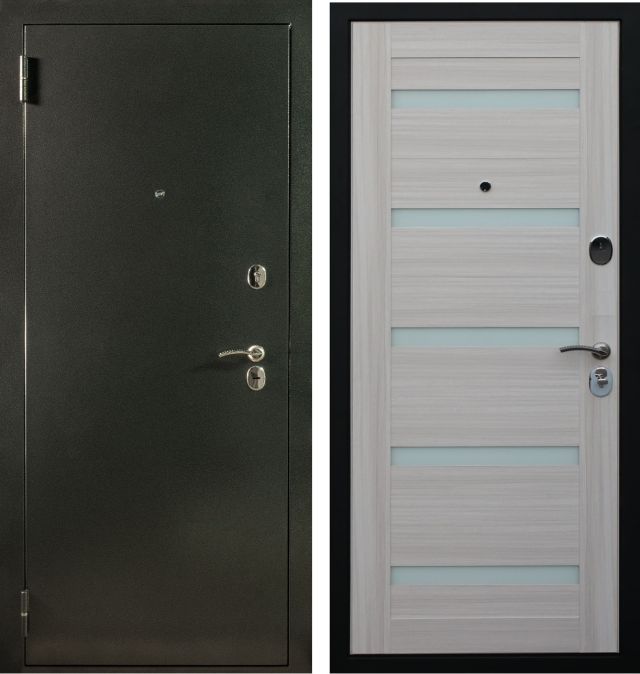 Дверь металлическая входная. Прокатный короб из холоднокатанной стали 1,2 мм. Толщина металла полотна 1,2 мм. Все конструктивные элементы двери изготовлены на лазерной установке с источником IPG. Толщина полотна 78 мм. Наполнение полотна: минеральная вата Tisma Aquastatic/Ursa Geo 44. Короб закрытый, также утеплен минеральной ватой. Основной замок цилиндровый Гардиан 32.11. Дополнительный замок сувальдный Гардиан 30.01. Для регулировки притвора двери на коробе есть специальный язычок, при установке его можно подтачивать. Цилиндровый механизм (хром) ключ+вертушок. Накладки овальные. Ручка на круглом основании модель 26. 3 противосъемных ригеля. 2 контура уплотнения. Уплотнитель изготавливается из резиновых смесей на основе EPDM каучуков. Внутренняя панель сборная МДФ толщиной 16 мм., покрытие экошпон, цвет лиственница белая.