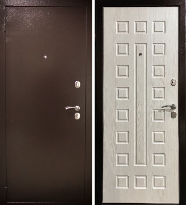 Дверь металлическая входная. Прокатный короб из холоднокатанной стали 1,2 мм. Толщина металла полотна 1,2 мм. Все конструктивные элементы двери изготовлены на лазерной установке с источником IPG. Толщина полотна 78 мм. Наполнение полотна: минеральная вата Tisma Aquastatic/Ursa Geo 44. Короб закрытый, также утеплен минеральной ватой. Основной замок цилиндровый Гардиан 32.11. Дополнительный замок сувальдный Гардиан 30.01. Для регулировки притвора двери на коробе есть специальный язычок, при установке его можно подтачивать. Цилиндровый механизм (хром) ключ+вертушок. Накладки овальные. Ручка на круглом основании модель 26. 3 противосъемных ригеля. 2 контура уплотнения. Уплотнитель изготавливается из резиновых смесей на основе EPDM каучуков. Внутренняя панель сборная МДФ толщиной 10 мм., покрытие экошпон, цвет лиственница белая.