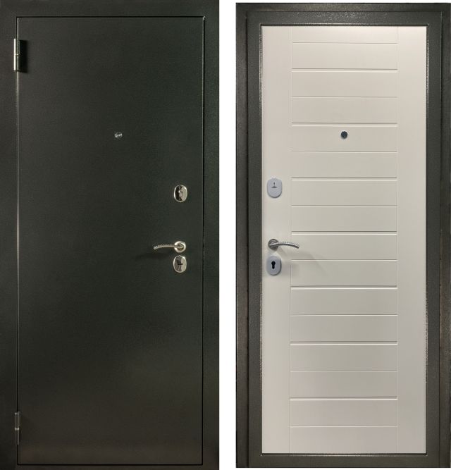 Дверь металлическая входная. Прокатный короб из холоднокатанной стали 1,2 мм. Толщина металла полотна 1,2 мм. Все конструктивные элементы двери изготовлены на лазерной установке с источником IPG. Толщина полотна 86 мм. Наполнение полотна: минеральная вата Tisma Aquastatic/Ursa Geo 44. Короб закрытый, также утеплен минеральной ватой. Основной замок цилиндровый Галеон 816 или аналог Punto 816. Дополнительный замок сувальдный Галеон 817 или аналог Punto 817. Для регулировки притвора двери на коробе установлен эксцентрик. Цилиндровый механизм (хром) ключ+вертушок. Накладки овальные. Ручка на круглом основании модель 26. 3 противосъемных ригеля. 3 контура уплотнения. Уплотнитель изготавливается из резиновых смесей на основе EPDM каучуков. Внутренняя панель фрезерованная МДФ толщиной 6 мм., покрытие экошпон, цвет лиственница бьянка.